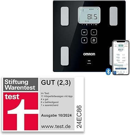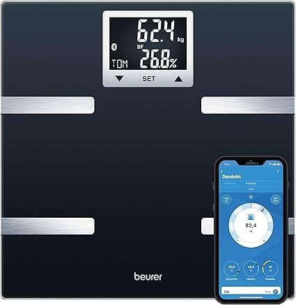 Kapazität & Genauigkeit: Unterstützt 180 kg; präzise in 0,05 kg-Schritten.Funktionen & Messungen: Erfasst Gewicht, Fett, Herzfrequenz, Knochen.